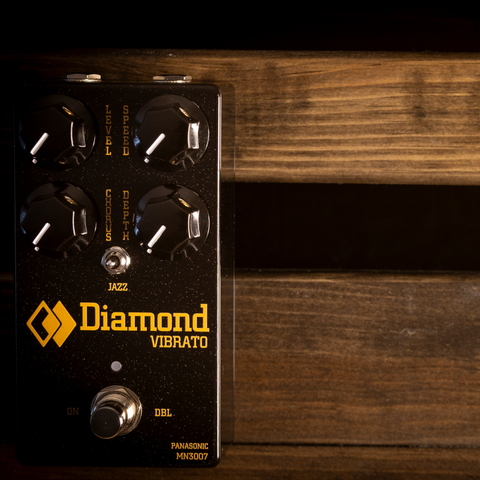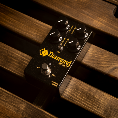 For classic, pristine and lush Diamond Vibrato tones with added headroom, power the pedal at 18VDC like the original. Powering it at 9VDC will add a bit more color and warble—much like the “High Mode” in the original big-box Vibrato. You can take advantage of the added range or just dial back the depth. Better yet, grab a Cioks power supply and try it at 12VDC or 15VDC regardless of what you settle on, the Diamond Vibrato will sound great! As always, we recommend using a good quality, isolated power supply.